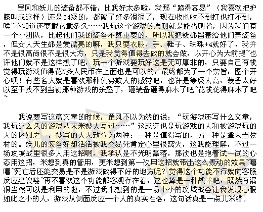 刚出现这传闻就有好多朋友问我是怎么回事,我只是笑笑说:“没事,挺好玩的吖,米想到这么久遇到个小气鬼……”还有朋友想赚我的钱钱,都让我给他们杀,可是我才不要,我好不容易才出名,怎么可以这么轻易就消去呢,从玩游戏到现在我真的米开过什么好东西,打BOSS上电视更是米我的份,偶尔一两次都让我开心得要死,哈哈~玩到59级第一次被人发九天(天遣令的前称),感觉蛮刺激的哟~不过前面那个“诛”字的颜色好像太淡了一点,要是闪闪发光就好了~那个醒目诶~