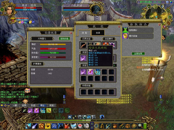 小怪不值一提,打第一个小BOSS猴子的时候也没什么大不了的,慢慢刷,先把前面的小怪引过来杀了再去打它,等自己和猴宝宝的状态全都恢复好的时候,选中CTRL+1让猴宝宝去拍它,然后在慢慢的打它,再给自己的猴宝宝加血就可以了,这个很轻松就过去了。(题外片,上次我34水峨眉试着单刷这个猴怪都惨死在它的爪下,我三无产品,无血、无宠、无装备,就是最普通的一身,去了都不行。技能总是被它打断,恨啊!)