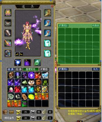 1. 在随身包裹内,点击【整理背包】按钮后会自动将背包内可以叠加的道具叠加。鼠标左键点击整理背包与右键点击整理背包整理效果不同。该功能每10秒使用一次。