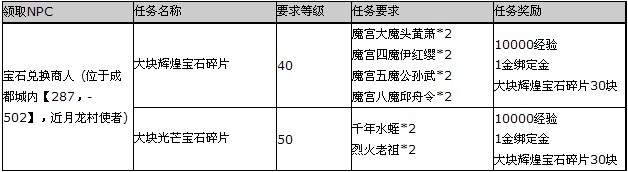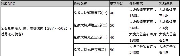 大块辉煌、光芒宝石兑换任务