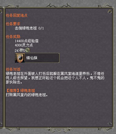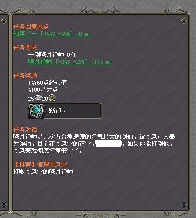 1.蓝法宝 任务NPC:知客了一 位置:黑风寨 所需等级:28级